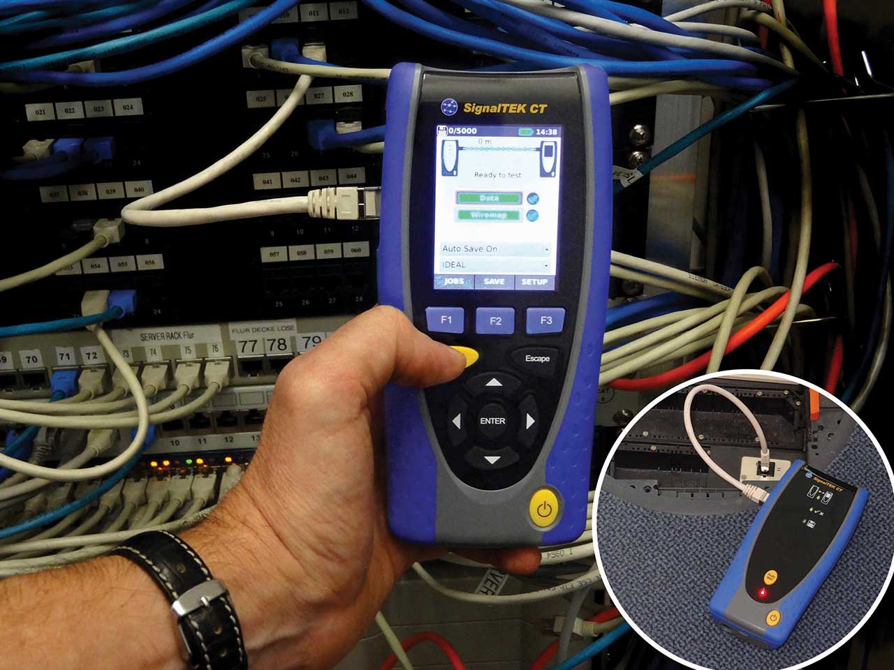 TREND Networks SignalTEK CT là thiết bị kiểm tra truyền dẫn cáp dữ liệu chuyên dụng, được thiết kế để xác minh cáp đồng (Cat5e–Cat7) có thể truyền tải dữ liệu Gigabit Ethernet thực tế một cách chính xác. Thiết bị này xác định các lỗi dây dẫn (mạch hở/mạch ngắn) bằng phương pháp TDR (Time Domain Reflectometry) và tạo ra các báo cáo PDF, trở thành công cụ thiết yếu cho các nhà lắp đặt khi xác nhận sự tuân thủ tiêu chuẩn IEEE 802.3ab.